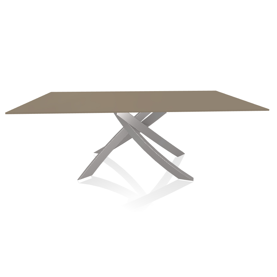 BONTEMPI table avec structure gris clair ARTISTICO 20.01 200x106 cm (Anti-rayures tourterelle opaque - Plateau en verre et structure en acier laqué gris clair)