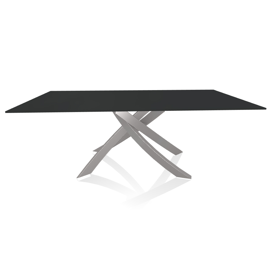 BONTEMPI table avec structure gris clair ARTISTICO 20.01 200x106 cm (Anti-rayures anthracite opaque - Plateau en verre et structure en acier laqué gris clair)