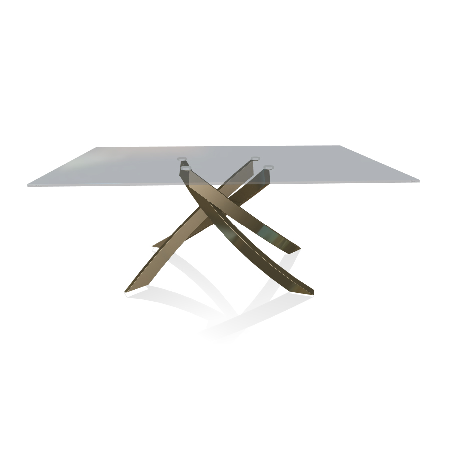 BONTEMPI table avec structure laiton vielli ARTISTICO 20.00 180x106 cm (Transparent fumé - Plateau en verre et structure en acier laqué laiton vielli)