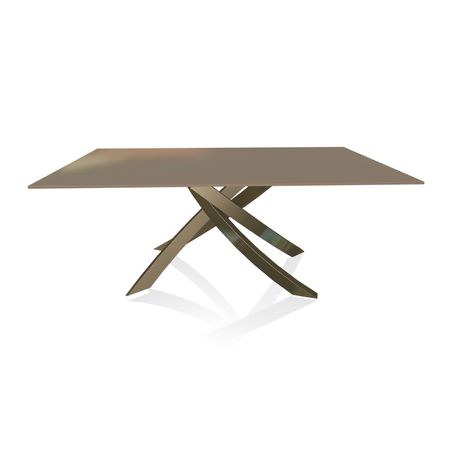 BONTEMPI table avec structure laiton vielli ARTISTICO 20.00 180x106 cm (Tourterelle brillant - Plateau en verre et structure en acier laqué laiton vielli)