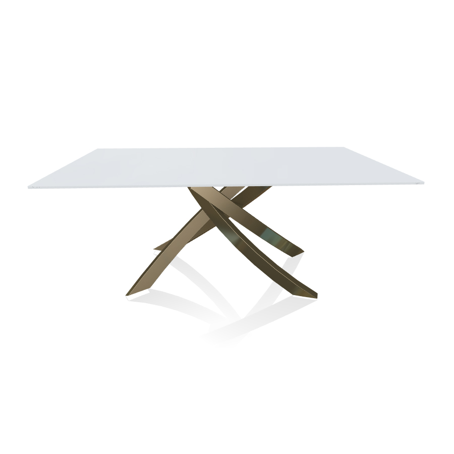 BONTEMPI table avec structure laiton vielli ARTISTICO 20.00 180x106 cm (Anti-rayures blanc opaque - Plateau en verre et structure en acier laqué laiton vielli)