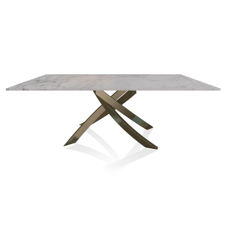 BONTEMPI table avec structure laiton vielli ARTISTICO 20.01 200x106 cm (Blanc Dolomite - Plateau en marbre naturel et structure en acier laqué laiton vielli)
