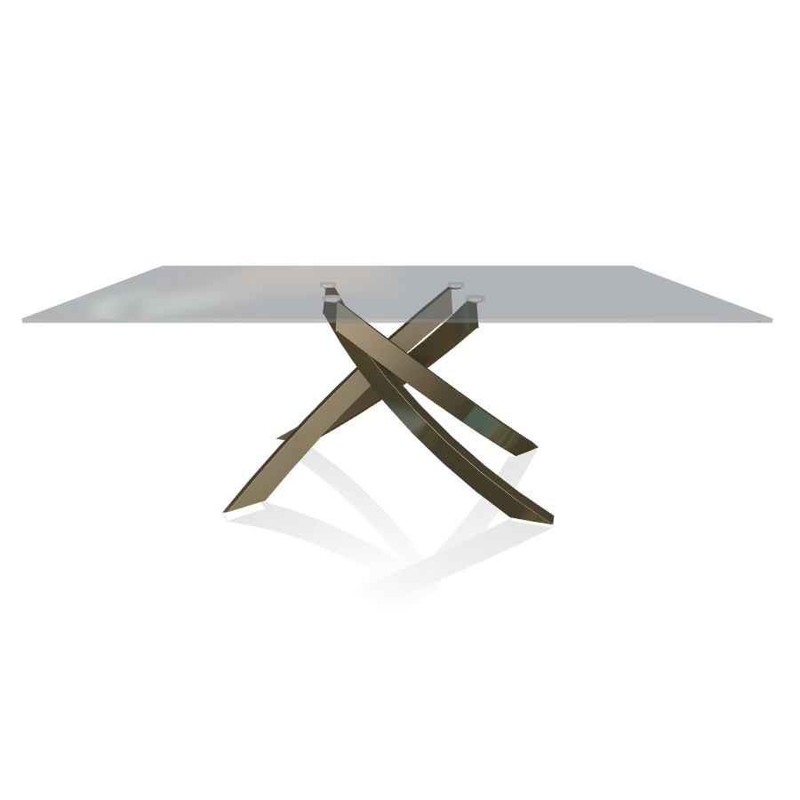 BONTEMPI table avec structure laiton vielli ARTISTICO 20.01 200x106 cm (Transparent fumé - Plateau en verre et structure en acier laqué laiton vielli)