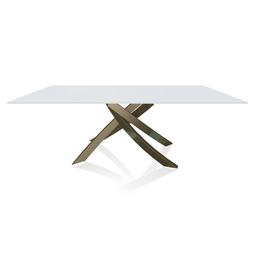 BONTEMPI table avec structure laiton vielli ARTISTICO 20.01 200x106 cm (Anti-rayures blanc opaque - Plateau en verre et structure en acier laqué laiton vielli)