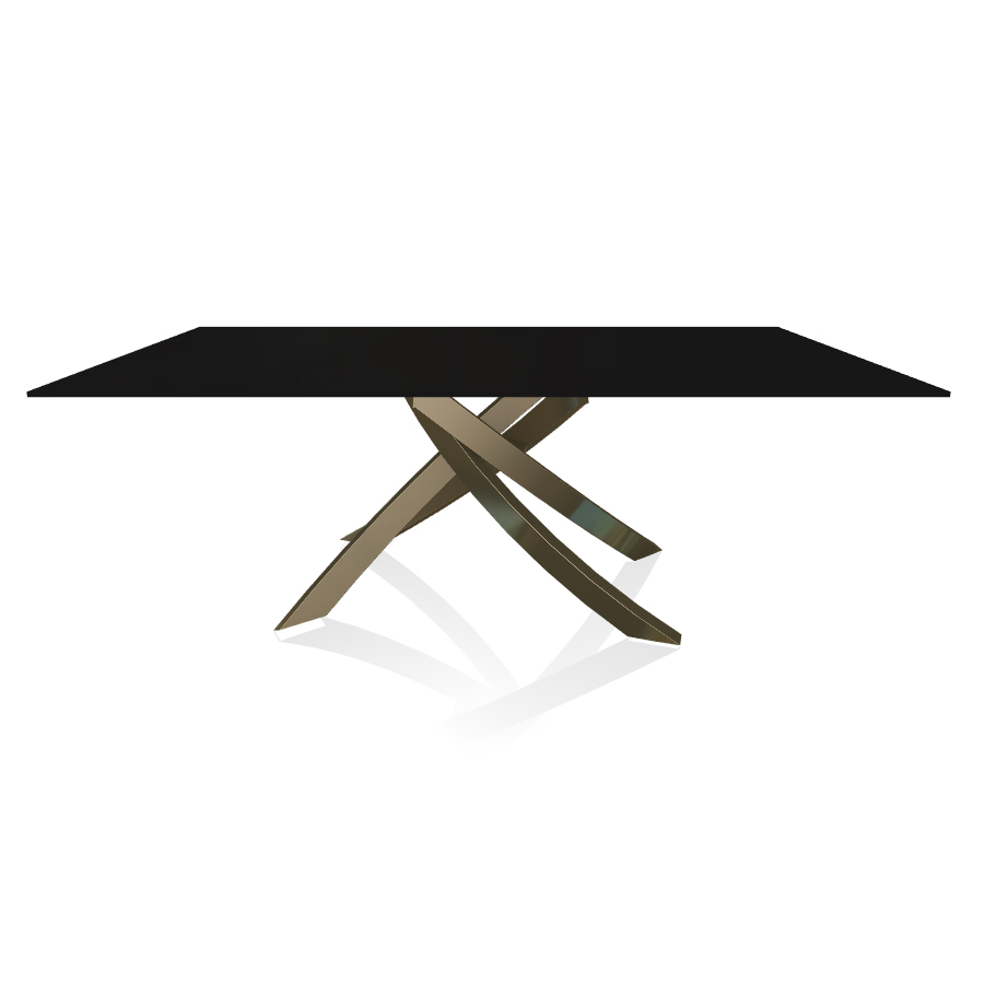 BONTEMPI table avec structure laiton vielli ARTISTICO 20.01 200x106 cm (Anti-rayures noir opaque - Plateau en verre et structure en acier laqué laiton vielli)