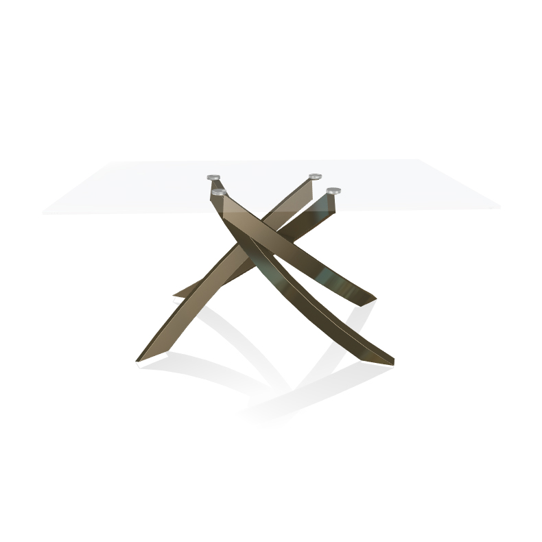 BONTEMPI table avec structure laiton vielli ARTISTICO 20.13 160x90 cm (Transparent extra-clair - Plateau en verre et structure en acier laqué laiton vielli)