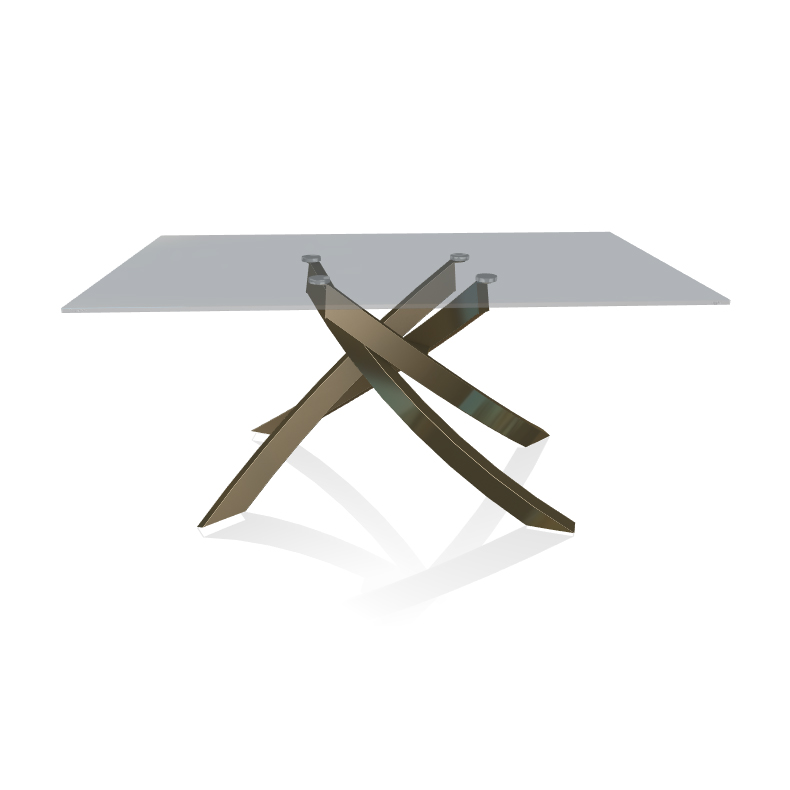 BONTEMPI table avec structure laiton vielli ARTISTICO 20.13 160x90 cm (Transparent fumé - Plateau en verre et structure en acier laqué laiton vielli)