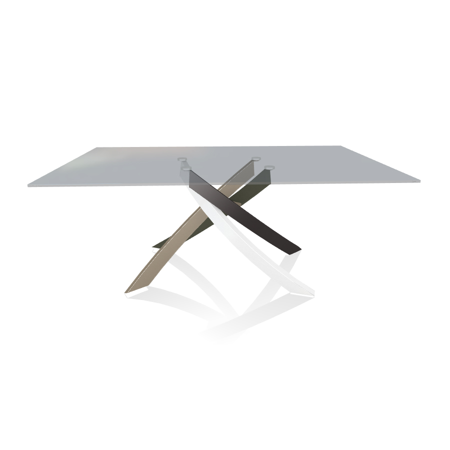 BONTEMPI table avec structure multicolor elegant ARTISTICO 20.00 180x106 cm (Transparent fumé - Plateau en verre et structure en acier laqué multicolor elegant)