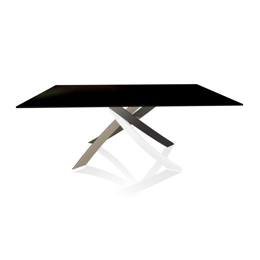 BONTEMPI table avec structure multicolor elegant ARTISTICO 20.00 180x106 cm (Laqué noir brillant - Plateau en verre et structure en acier laqué multicolor elegant)