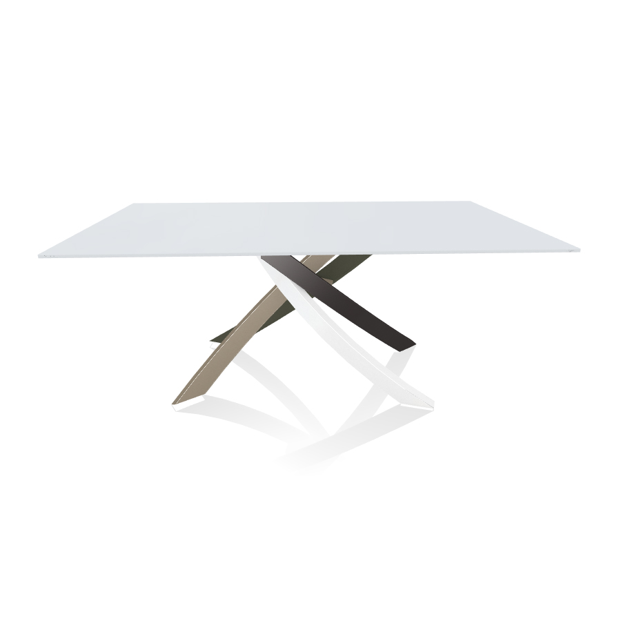 BONTEMPI table avec structure multicolor elegant ARTISTICO 20.00 180x106 cm (Anti-rayures blanc opaque - Plateau en verre et structure en acier laqué multicolor elegant)