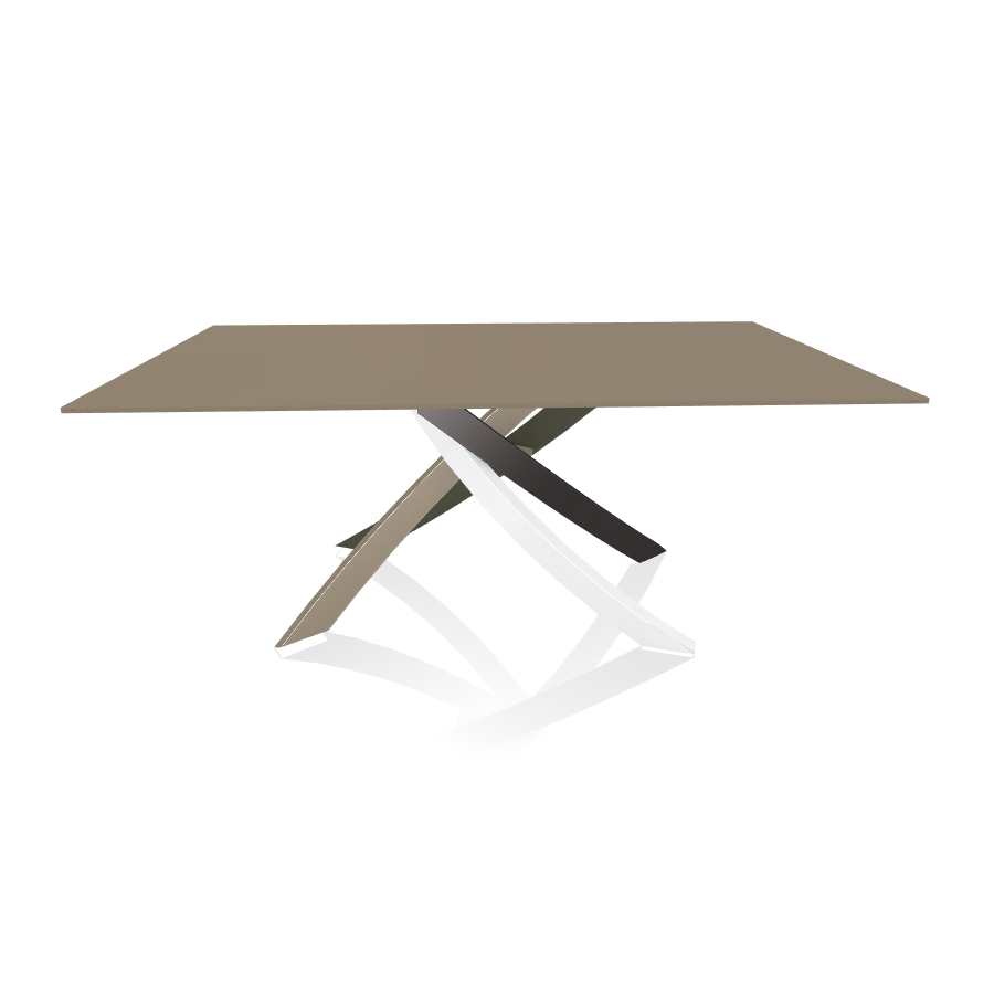 BONTEMPI table avec structure multicolor elegant ARTISTICO 20.00 180x106 cm (Anti-rayures tourterelle opaque - Plateau en verre et structure en acier laqué multicolor elegant)