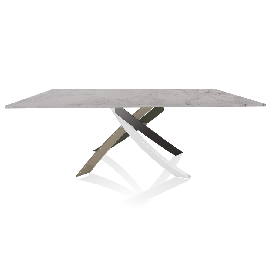 BONTEMPI table avec structure multicolor elegant ARTISTICO 20.01 200x106 cm (Blanc Dolomite - Plateau en marbre naturel et structure en acier laqué multicolor elegant)