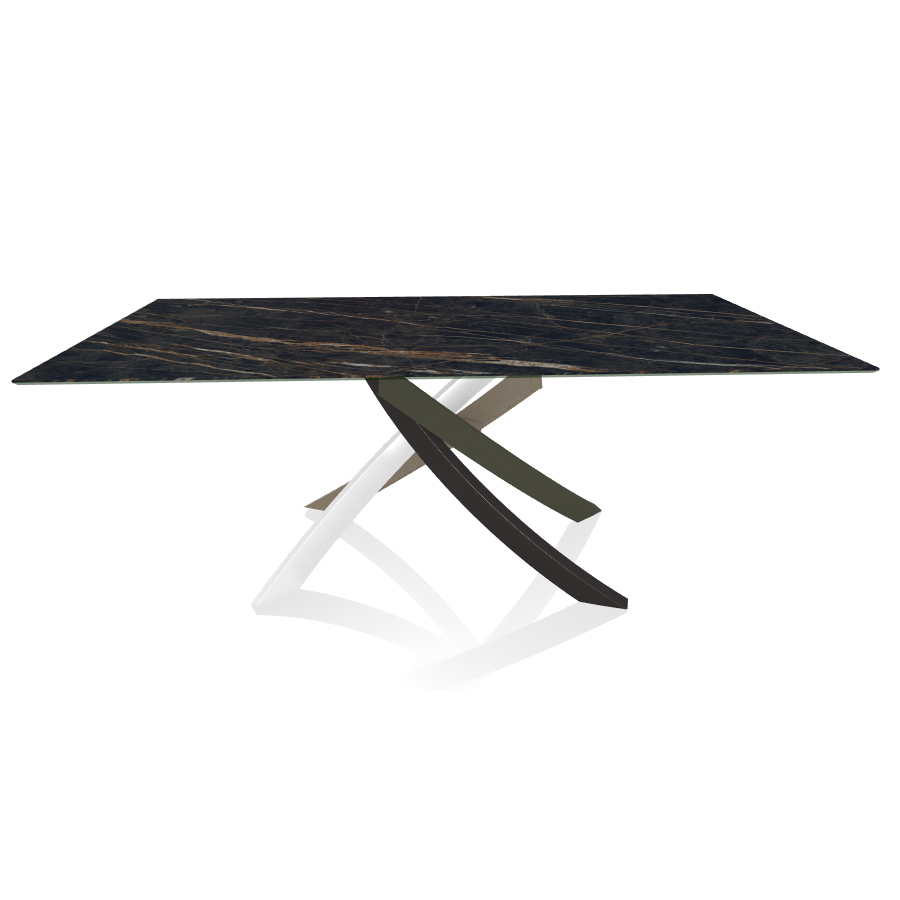 BONTEMPI table avec structure multicolor elegant ARTISTICO 52.45 200x100 cm (Noir Desir brillant - Plateau en SuperMarbre et structure en acier laqué multicolor elegant)