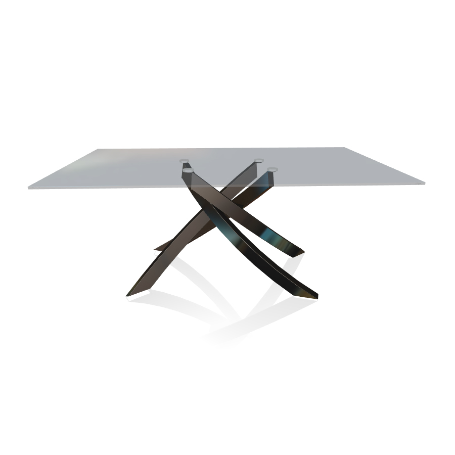 BONTEMPI table avec structure noir poli ARTISTICO 20.00 180x106 cm (Transparent fumé - Plateau en verre et structure en acier laqué noir poli)