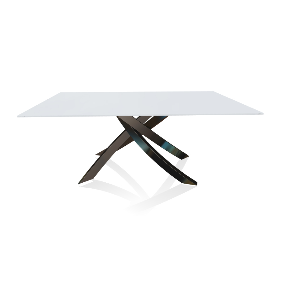 BONTEMPI table avec structure noir poli ARTISTICO 20.00 180x106 cm (Anti-rayures blanc opaque - Plateau en verre et structure en acier laqué noir poli)