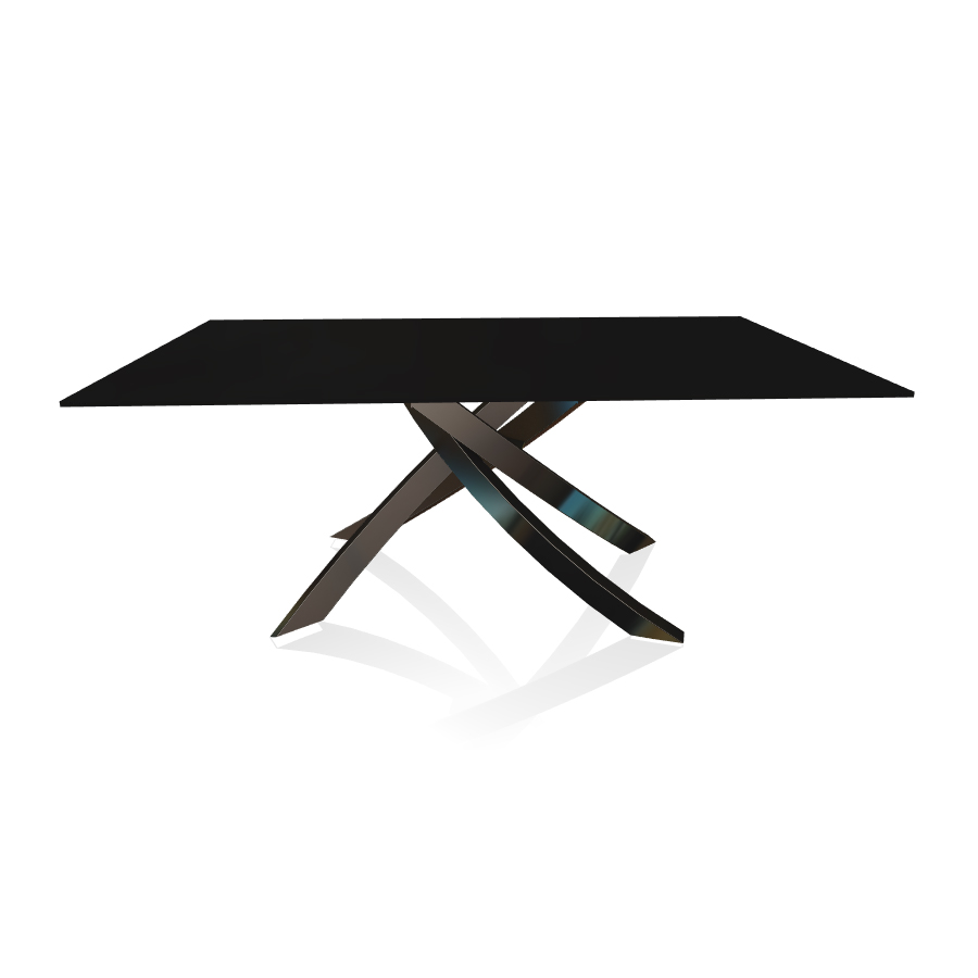 BONTEMPI table avec structure noir poli ARTISTICO 20.00 180x106 cm (Anti-rayures noir opaque - Plateau en verre et structure en acier laqué noir poli)