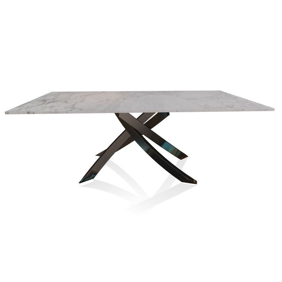 BONTEMPI table avec structure noir poli ARTISTICO 20.01 200x106 cm (Blanc Dolomite - Plateau en marbre naturel et structure en acier laqué noir poli)