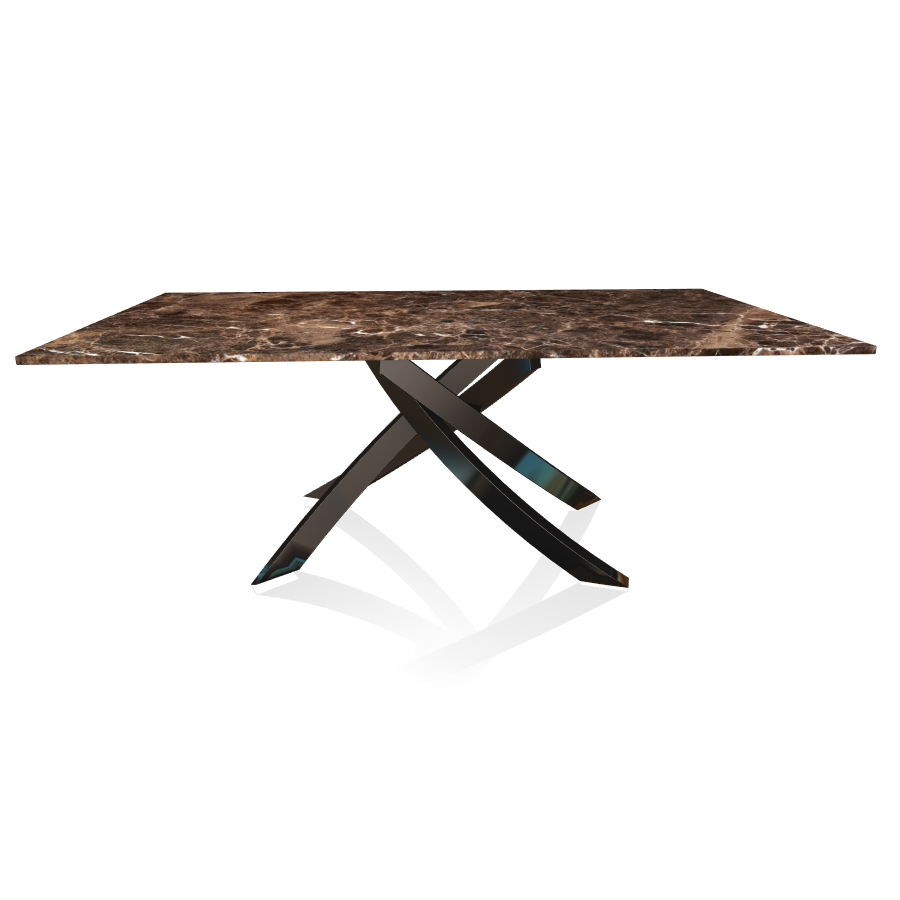 BONTEMPI table avec structure noir poli ARTISTICO 20.01 200x106 cm (Dark Emperador - Plateau en marbre naturel et structure en acier laqué noir poli)