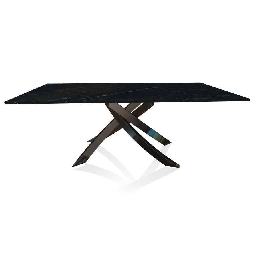 BONTEMPI table avec structure noir poli ARTISTICO 20.01 200x106 cm (Noir Marquina - Plateau en marbre naturel et structure en acier laqué noir poli)