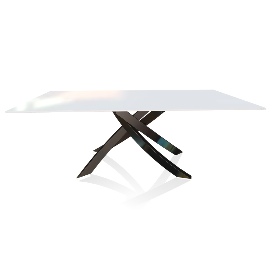 BONTEMPI table avec structure noir poli ARTISTICO 20.01 200x106 cm (Extrawhite brillant - Plateau en verre et structure en acier laqué noir poli)
