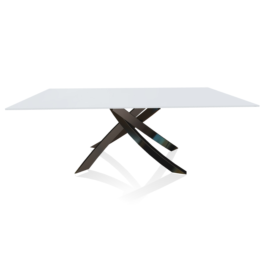 BONTEMPI table avec structure noir poli ARTISTICO 20.01 200x106 cm (Anti-rayures blanc opaque - Plateau en verre et structure en acier laqué noir poli)