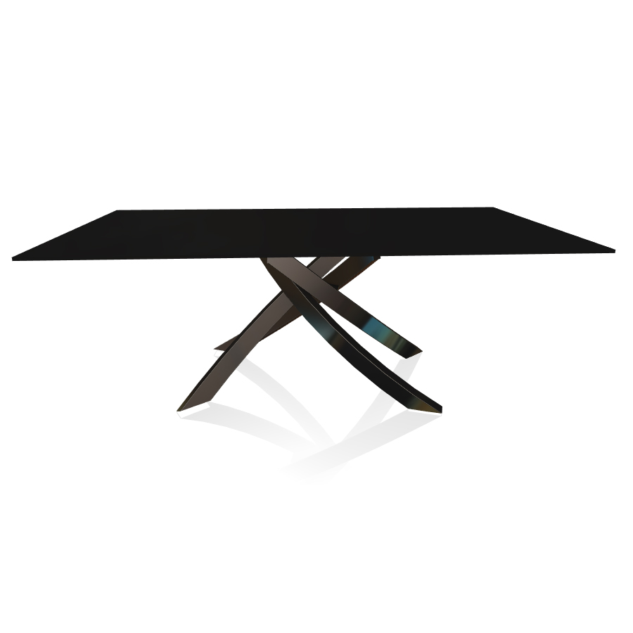 BONTEMPI table avec structure noir poli ARTISTICO 20.01 200x106 cm (Anti-rayures noir opaque - Plateau en verre et structure en acier laqué noir poli)