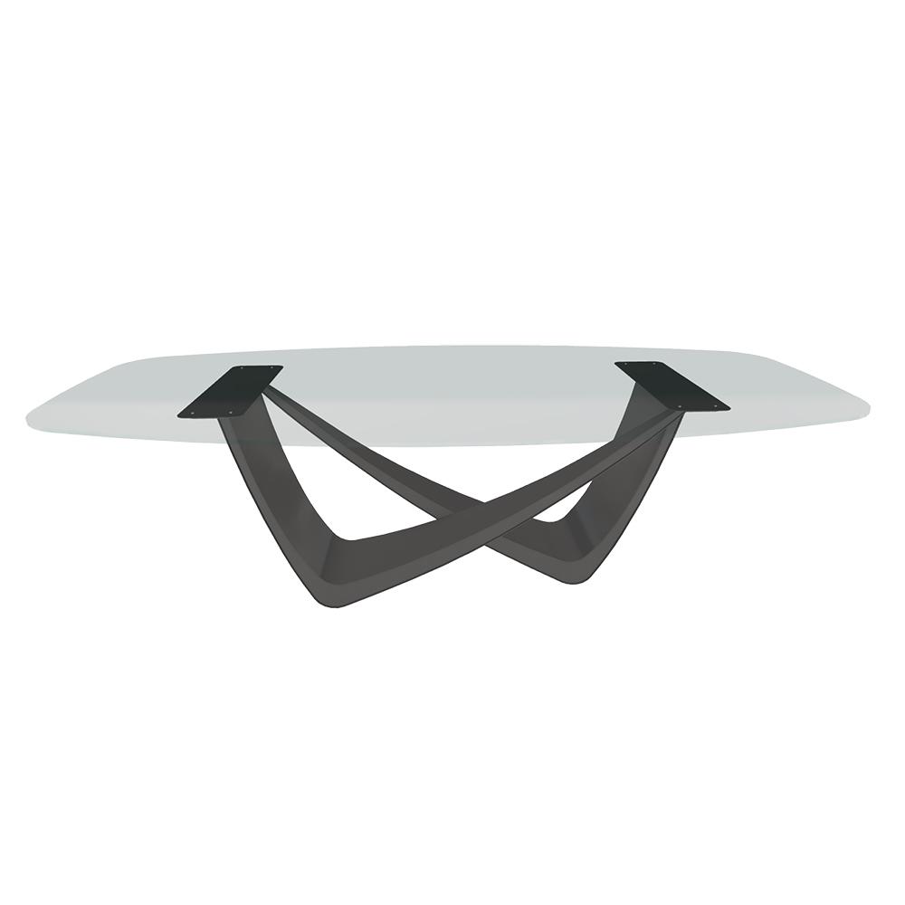BONTEMPI table fixe tonneau avec structure anthracite BACH 53.76 250x120 cm (Transparent extra-clair - Struttura in acciaio laccato antracite e piano in cristallo)