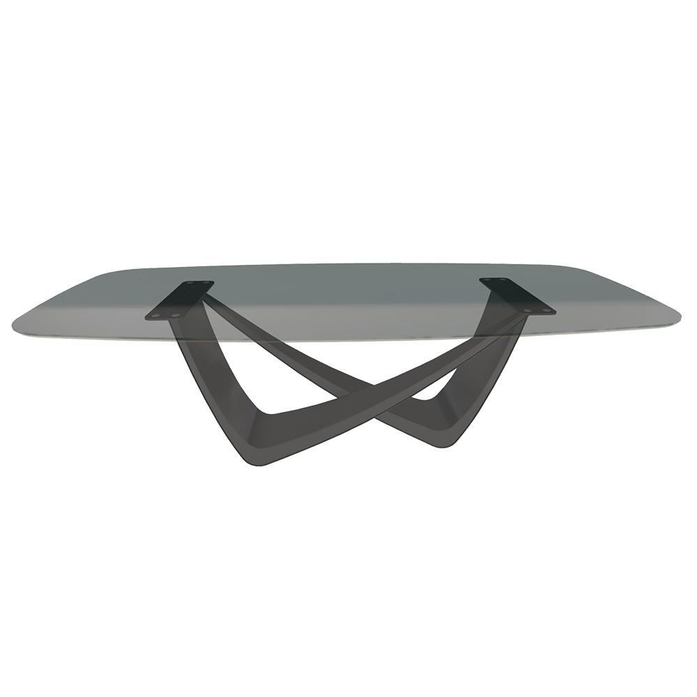 BONTEMPI table fixe tonneau avec structure anthracite BACH 53.76 250x120 cm (Transparent fumé - Struttura in acciaio laccato antracite e piano in cristallo)