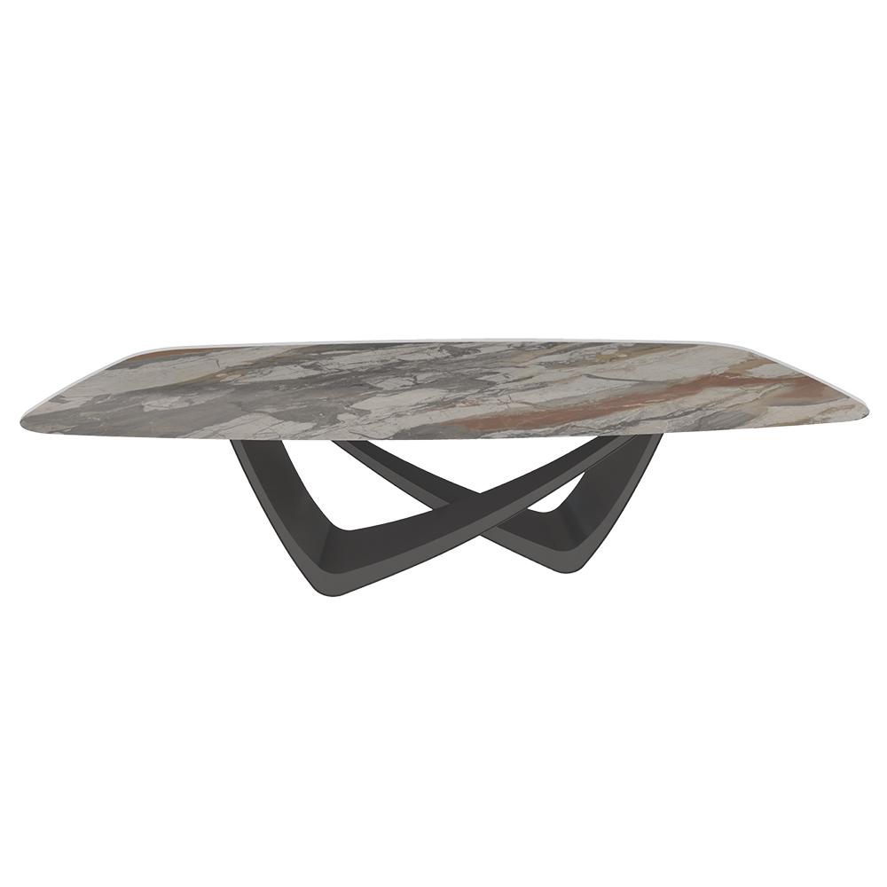 BONTEMPI table fixe tonneau avec structure anthracite BACH 53.76 250x120 cm (Art Glass Breccia rossa di Sicilia - Struttura in acciaio laccato antracite e piano in cristallo temprato)