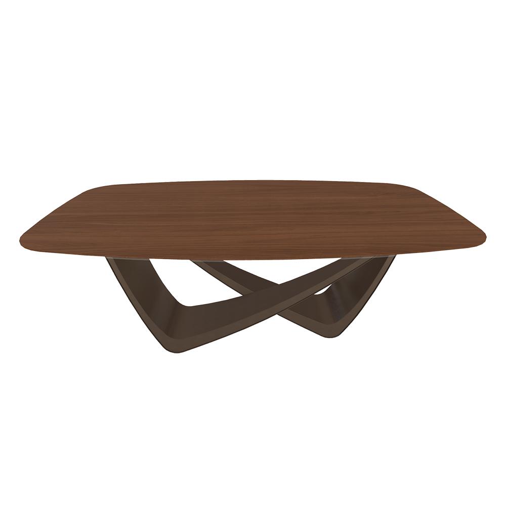 BONTEMPI table fixe tonneau avec structure laiton foncé BACH 53.75 200x116 cm (Noyer - Struttura in acciaio laccato ottone scuro e piano in legno impiallacciato)