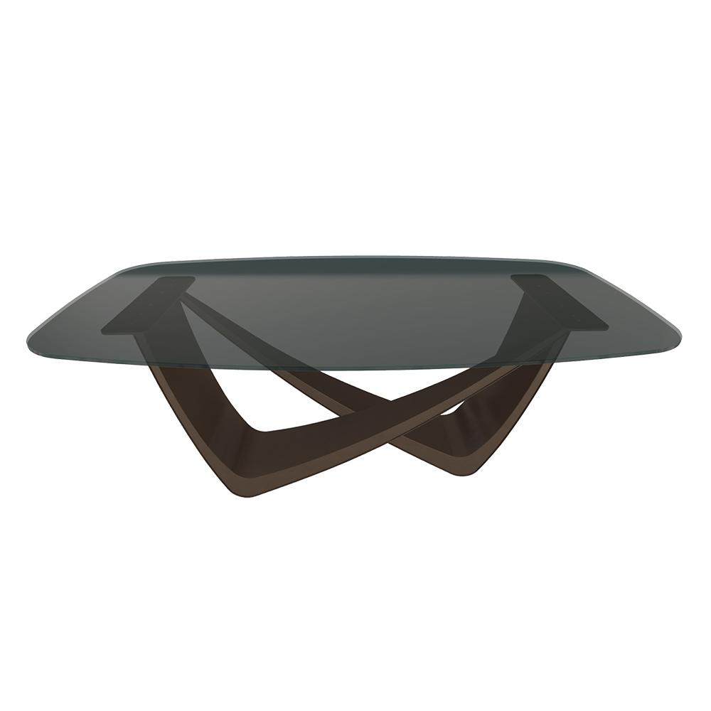 BONTEMPI table fixe tonneau avec structure laiton foncé BACH 53.75 200x116 cm (Transparent fumé - Struttura in acciaio laccato ottone scuro e piano in cristallo)