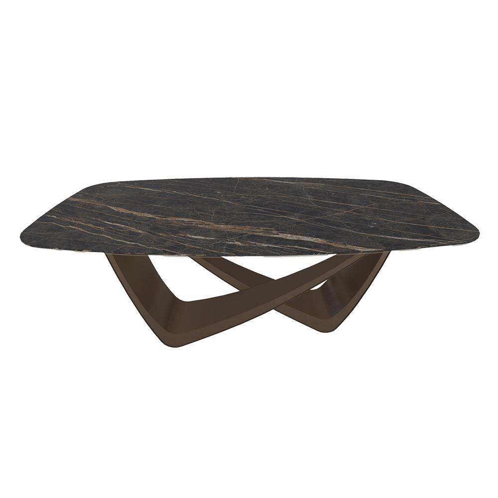 BONTEMPI table fixe tonneau avec structure laiton foncé BACH 53.75 200x116 cm (SuperMarmo Noir Desir opaco - Struttura in acciaio laccato ottone scuro e piano in ceramica e cristallo)