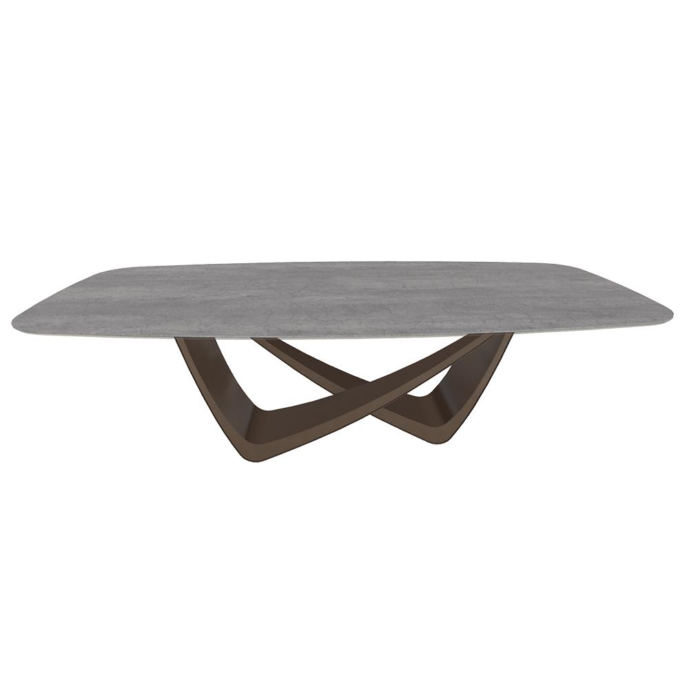 BONTEMPI table fixe tonneau avec structure laiton foncé BACH 53.76 250x120 cm (SuperCeramica grigio Savoia - Struttura in acciaio laccato ottone scuro e piano in ceramica e cristallo)
