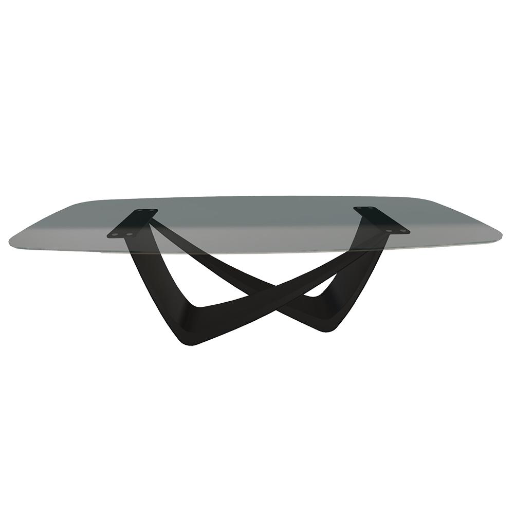 BONTEMPI table fixe tonneau avec structure noire matte BACH 53.76 250x120 cm (Transparent fumé - Struttura in acciaio laccato nero opaco e piano in cristallo)