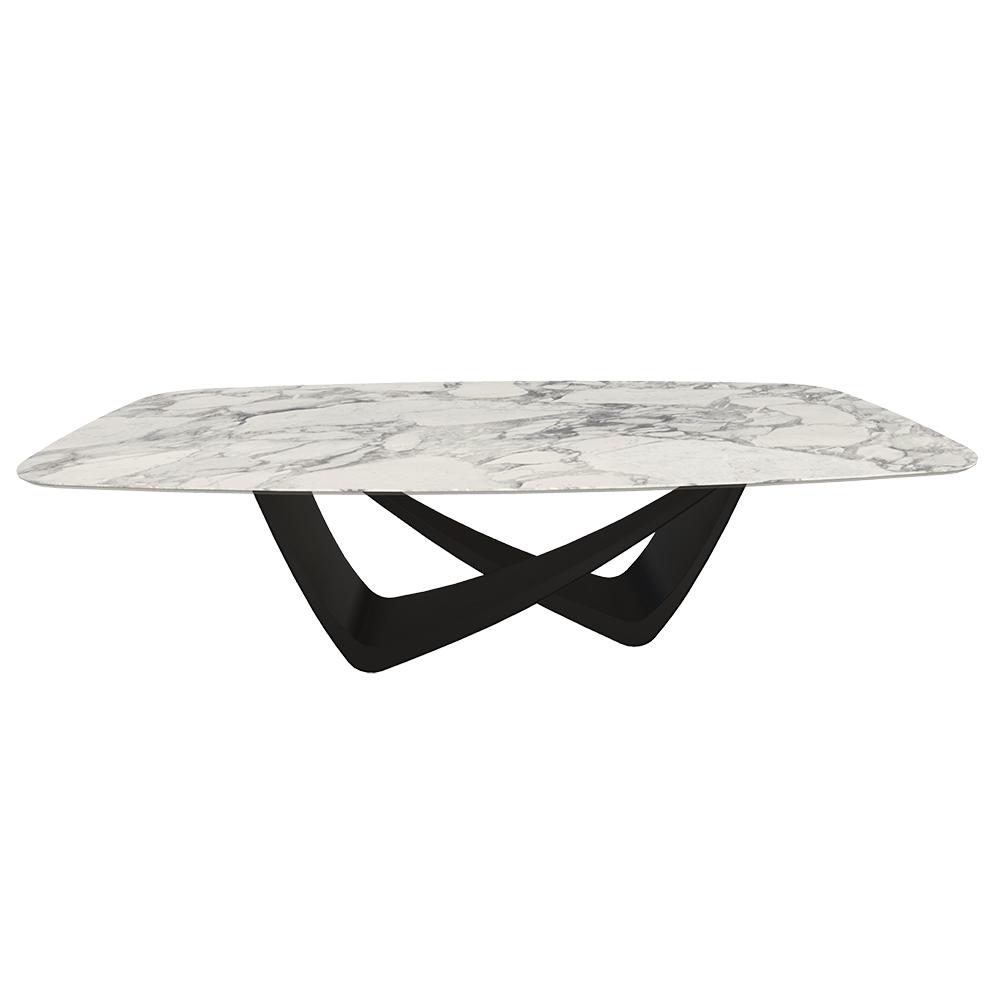 BONTEMPI table fixe tonneau avec structure noire matte BACH 53.76 250x120 cm (SuperMarmo Arabescato lucido lucido - Struttura in acciaio laccato nero opaco e piano in ceramica e cristallo)