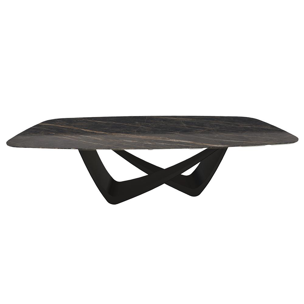 BONTEMPI table fixe tonneau avec structure noire matte BACH 53.76 250x120 cm (SuperMarmo Noir Desir lucido - Struttura in acciaio laccato nero opaco e piano in ceramica e cristallo)