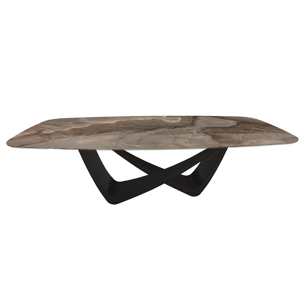 BONTEMPI table fixe tonneau avec structure noire matte BACH 53.76 250x120 cm (SuperMarmo Choco lucido - Struttura in acciaio laccato nero opaco e piano in ceramica e cristallo)