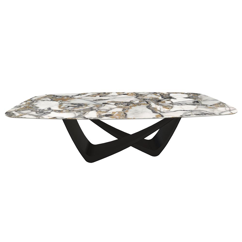 BONTEMPI table fixe tonneau avec structure noire matte BACH 53.76 250x120 cm (SuperMarmo Étoile Gold lucido - Struttura in acciaio laccato nero opaco e piano in ceramica e cristallo)