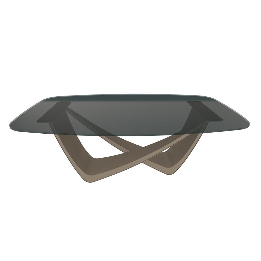 BONTEMPI table fixe tonneau avec structure sable BACH 53.75 200x116 cm (Transparent fumé - Struttura in acciaio laccato sabbia e piano in cristallo)