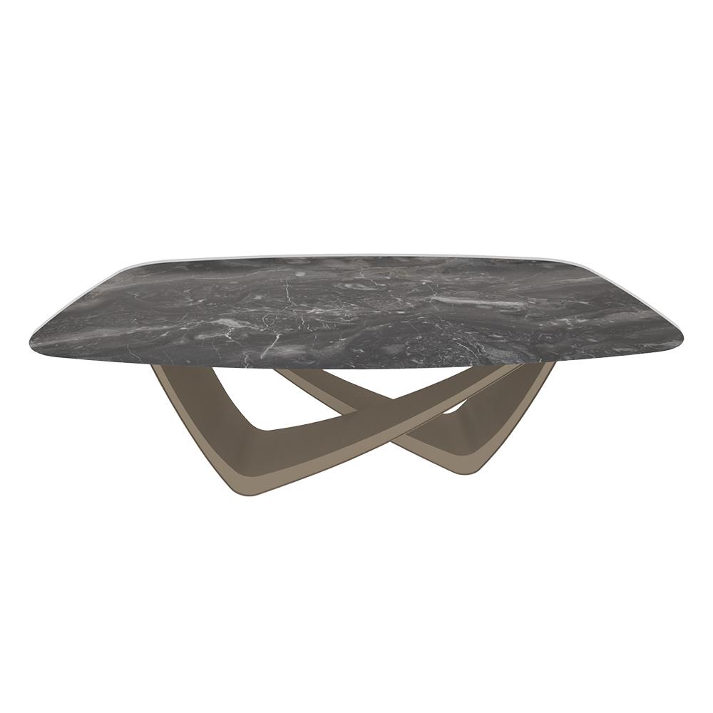 BONTEMPI table fixe tonneau avec structure sable BACH 53.75 200x116 cm (Art Glass Arabescato Imperiale Orobico - Struttura in acciaio laccato sabbia e piano in cristallo temprato)