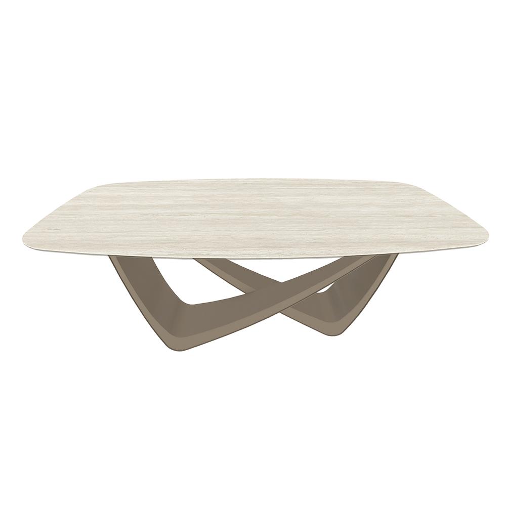 BONTEMPI table fixe tonneau avec structure sable BACH 53.75 200x116 cm (SuperMarmo Travertino bianco pietra opaco - Struttura in acciaio laccato sabbia e piano in ceramica e cristallo)