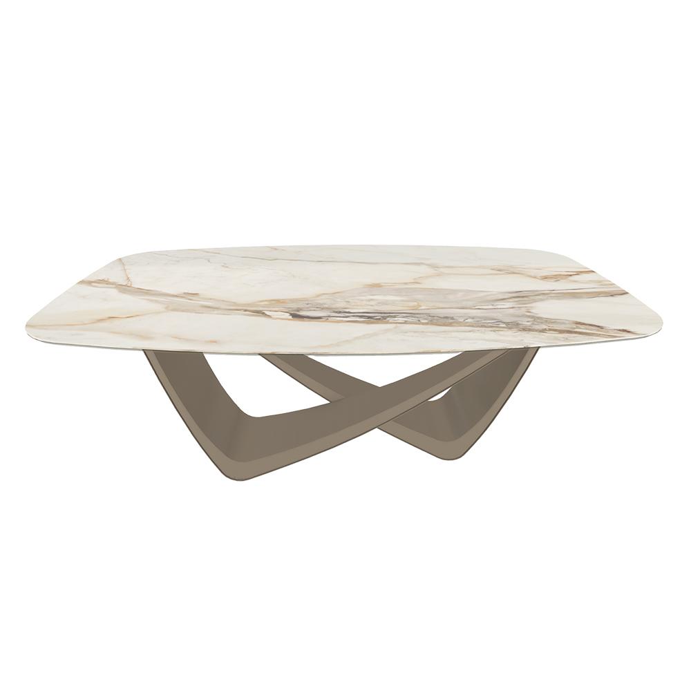 BONTEMPI table fixe tonneau avec structure sable BACH 53.75 200x116 cm (SuperMarmo Amber whisper lucido - Struttura in acciaio laccato sabbia e piano in ceramica e cristallo)