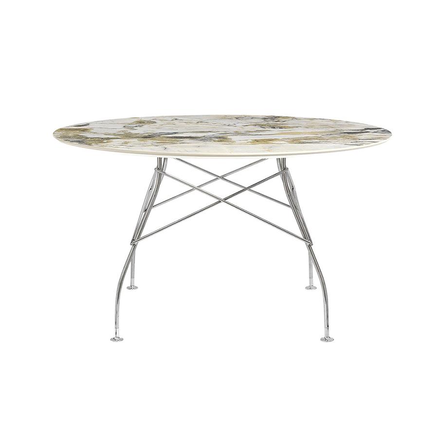KARTELL table ronde GLOSSY MARBLE Ø 128 cm (Symphonie - Grès finition Marbre et acier chromé)