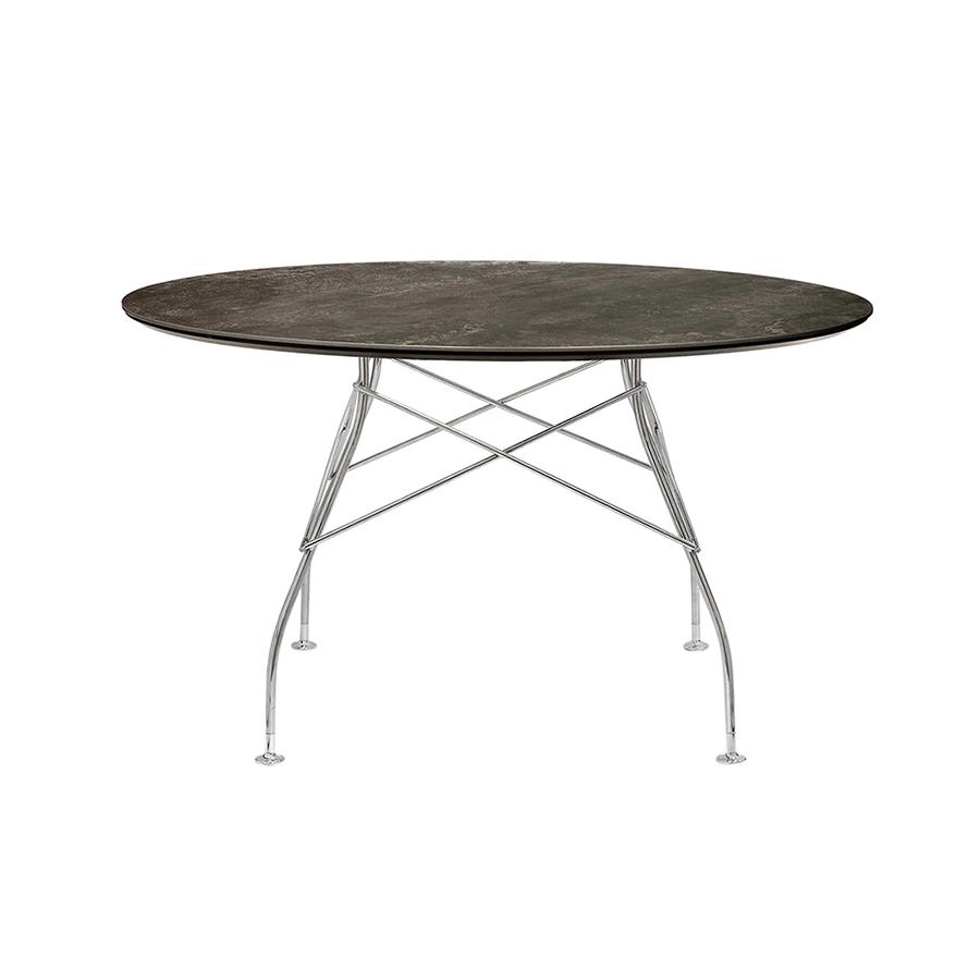 KARTELL table ronde GLOSSY MARBLE Ø 128 cm (Aged Bronze - Grès finition Marbre et acier chromé)