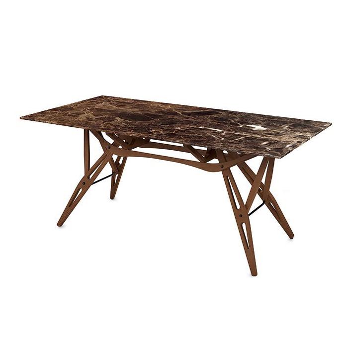 ZANOTTA table avec plateau en marbre Emperador REALE (90x200 cm - Chêne teinté noyer)