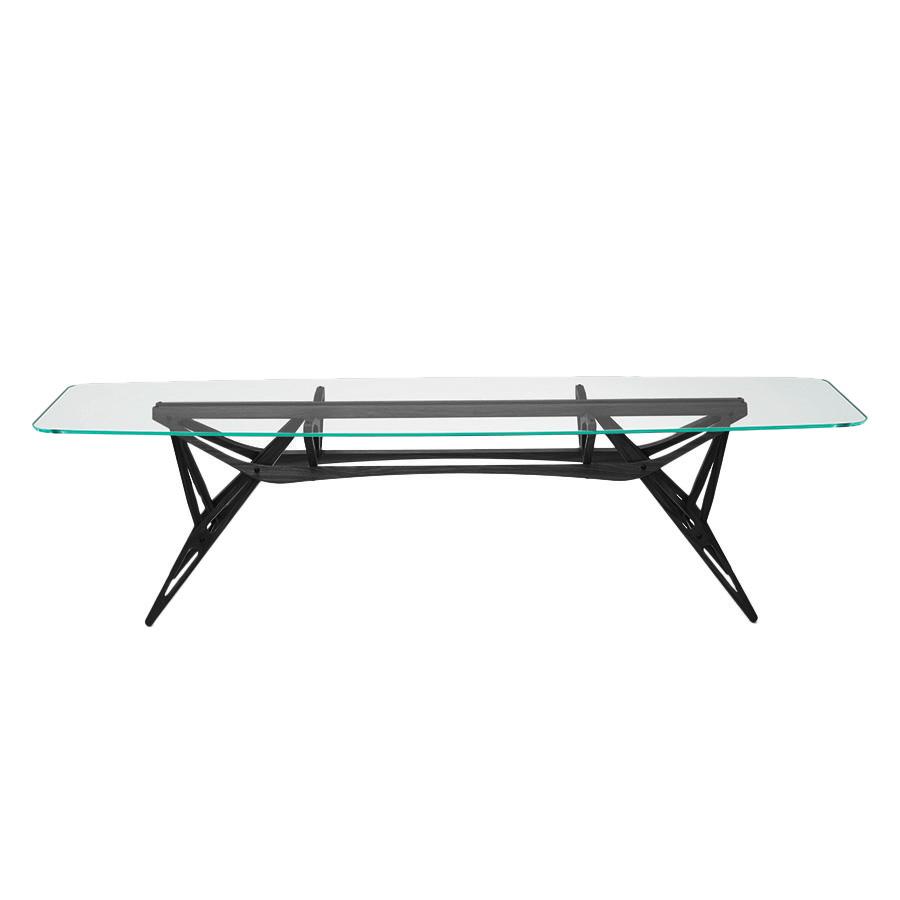 ZANOTTA table avec plateau en verre REALE CM (90x220 cm - Chêne teinté noir, cristal extra-clair)