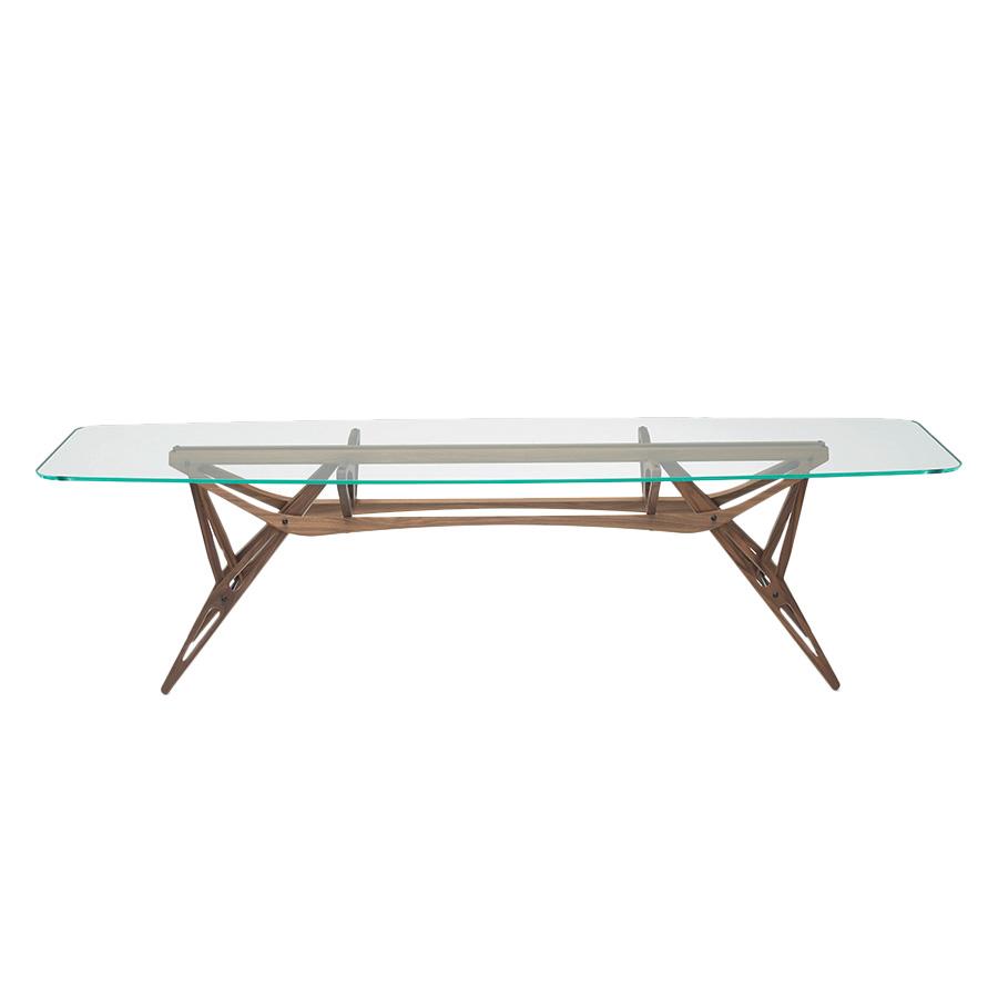 ZANOTTA table avec plateau en verre REALE (90x180 cm - Chêne teinté noyer)
