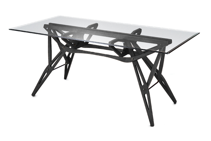 ZANOTTA table avec plateau en verre REALE (90x200 cm - Chêne teint noir)
