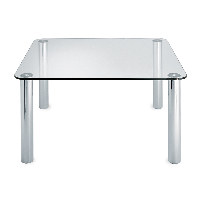 ZANOTTA table MARCUSO 100x100 cm (Transparent - cristal et acier inox)