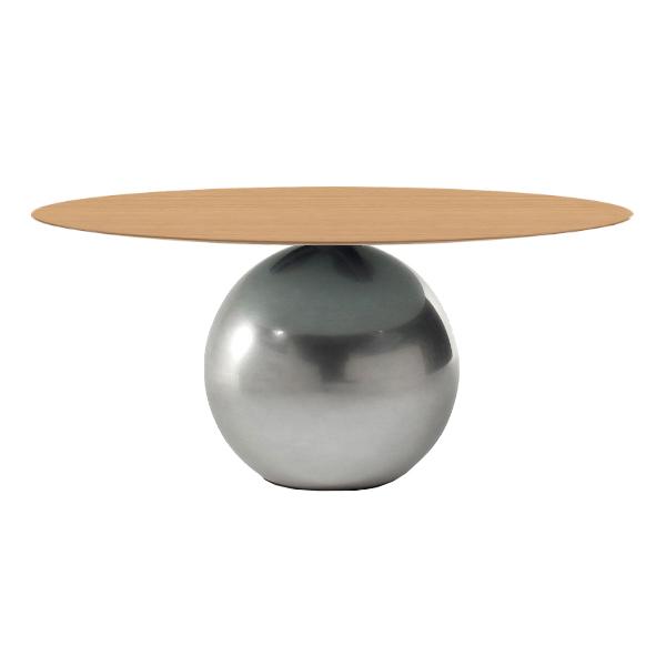 BONALDO table ronde CIRCUS Ø 180 cm base Clouded Chrome (Plateau en chêne naturel brossé - Métal Special et wood)